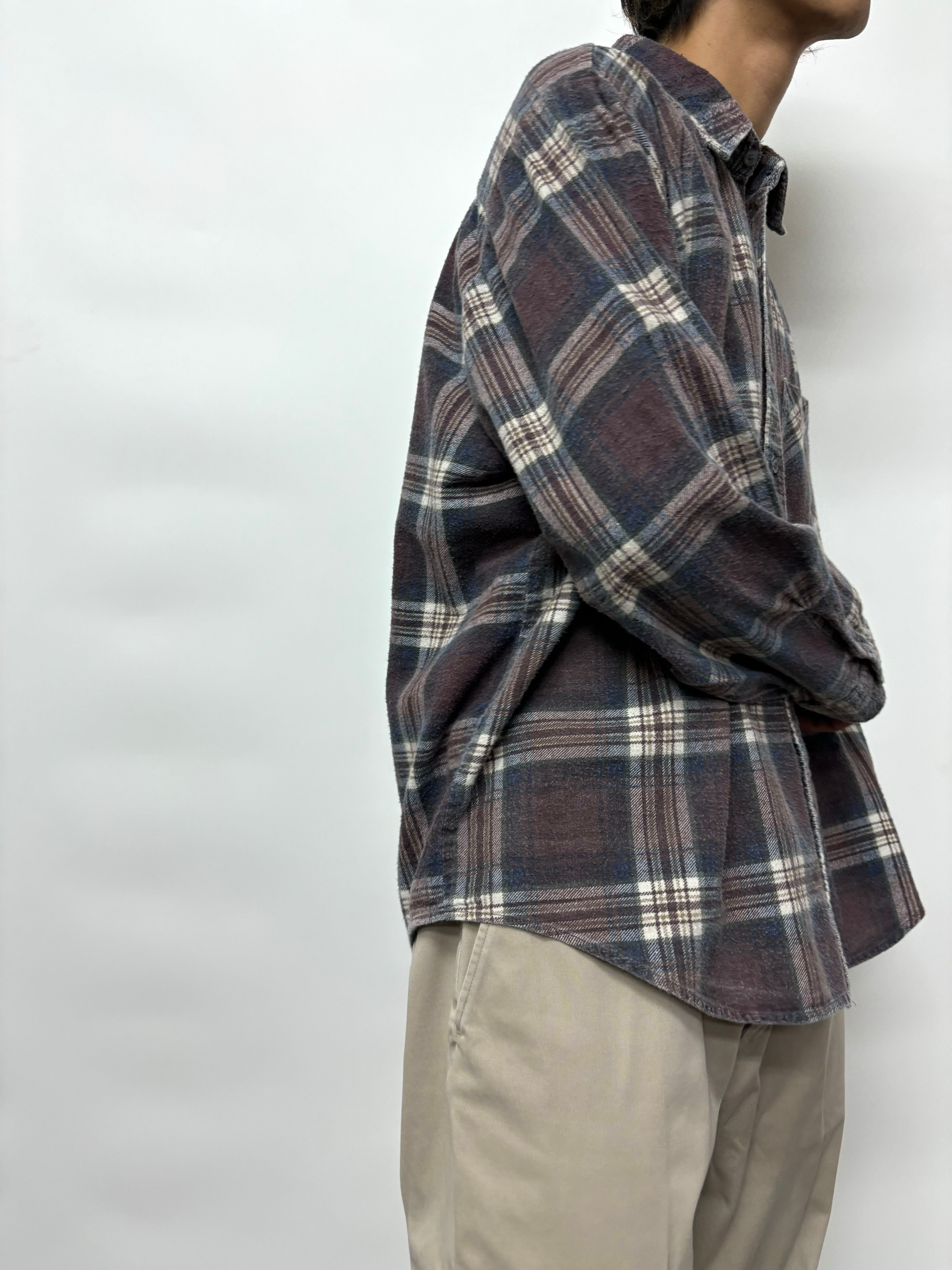 身幅ゆったりなプリントネルシャツ