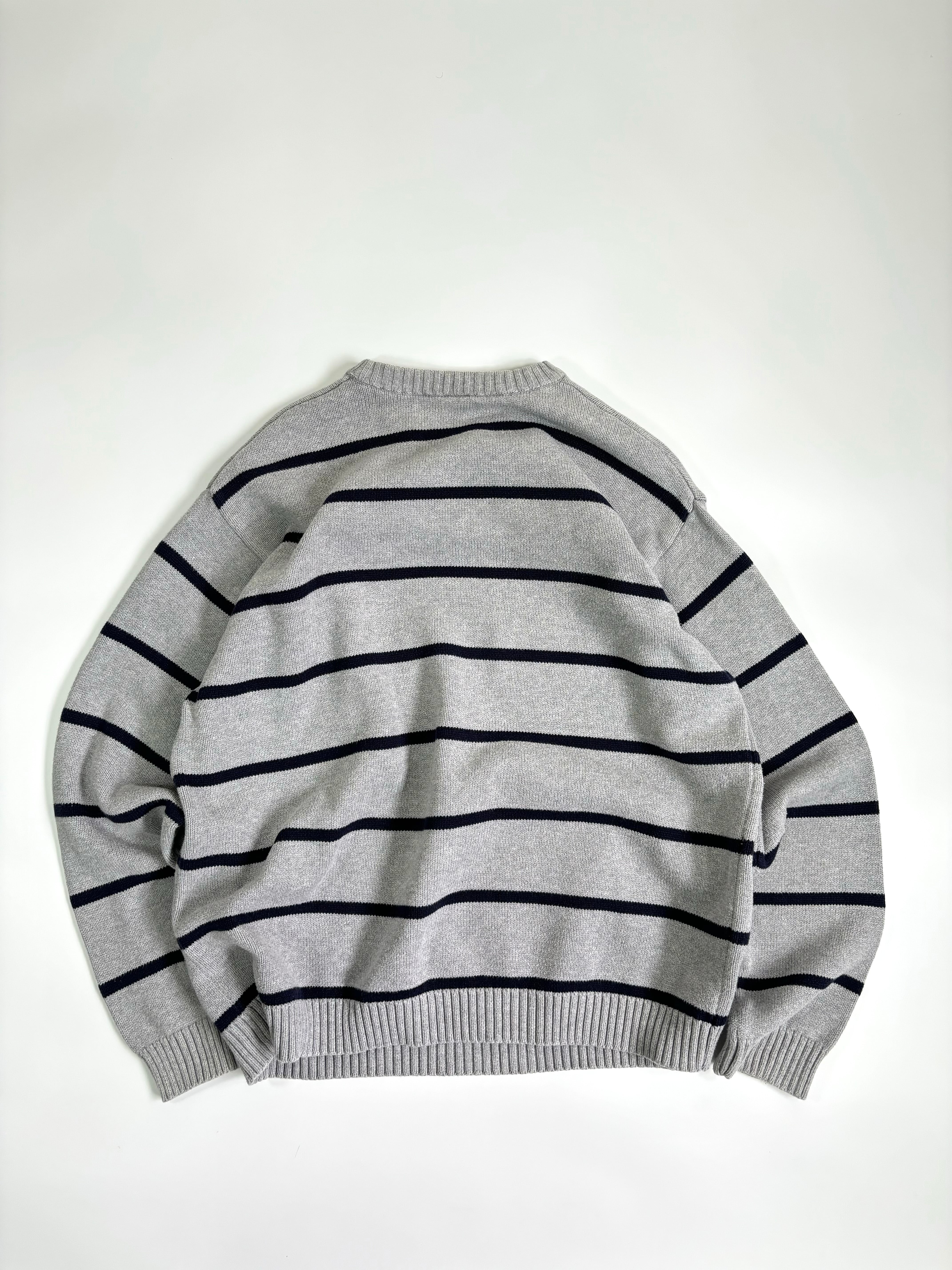 グレー×ネイビーのコットンニット