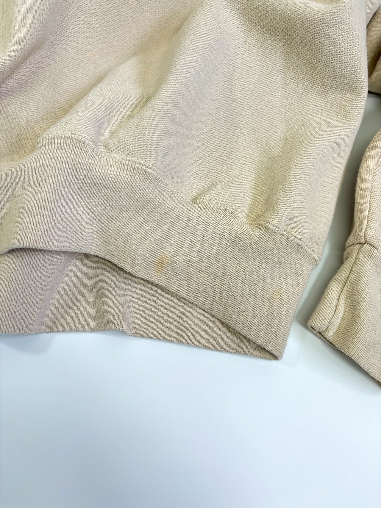 お腹辺りや袖に色移り、薄シミのようなのがあります