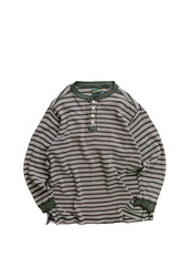 ヘンリーネックでサーマル生地でボーダー柄。